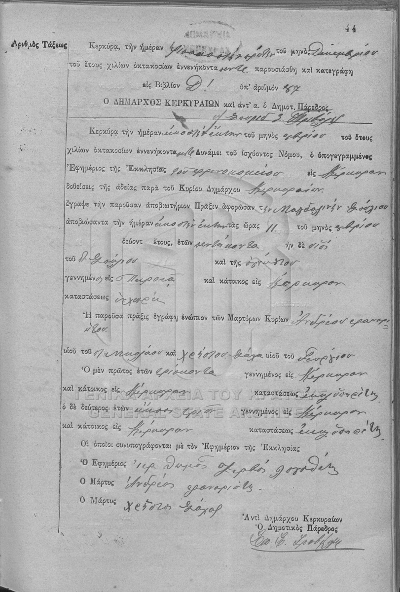 [Υποφάκελος] GRGSA-KER_REGD00.00.F001895.SF0004 Υποφάκελος #004 - ΛΗΞΙΑΡΧΕΙΟ ΚΕΡΚΥΡΑΣ [1895] Βιβλίο 4. Αριθμός πράξεων 1 - 104. |