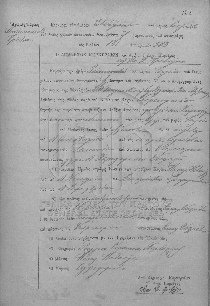 Υποφάκελος #002 - ΛΗΞΙΑΡΧΕΙΟ ΚΕΡΚΥΡΑΣ  [1896]