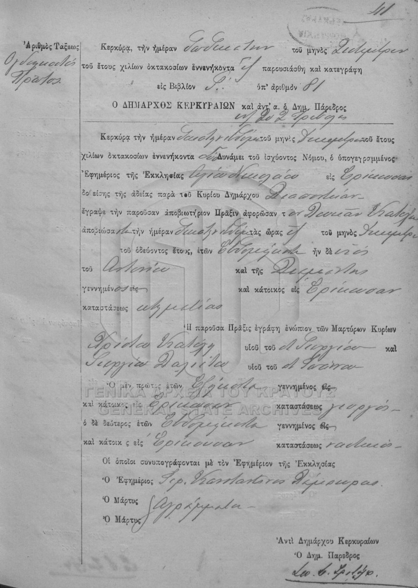 [Αρχείο] GRGSA-KER_REGD00 ΛΗΞΙΑΡΧΕΙΟ ΚΕΡΚΥΡΑΣ - Ληξιαρχικές Πράξεις Θανάτων [1841 - 1932] Περιεχόμενα: Αριθμός πράξεων 1 - 600. Βιβλίο 1. Αριθμός πράξεων 1 - 565. |