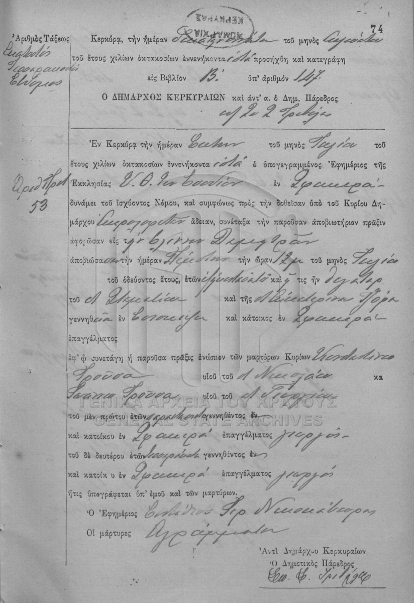 Υποφάκελος #002 - ΛΗΞΙΑΡΧΕΙΟ ΚΕΡΚΥΡΑΣ  [1897]