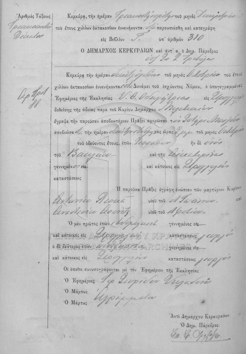 Υποφάκελος #003 - ΛΗΞΙΑΡΧΕΙΟ ΚΕΡΚΥΡΑΣ  [1897]