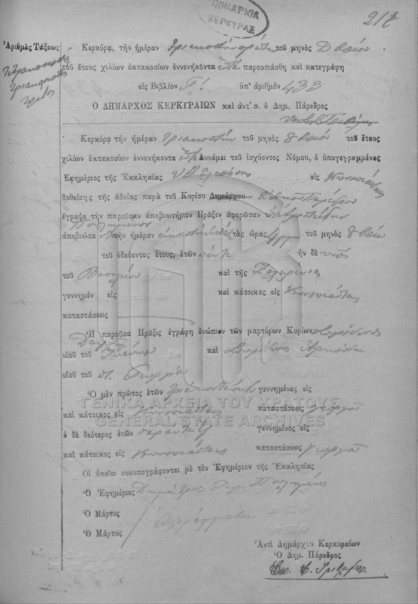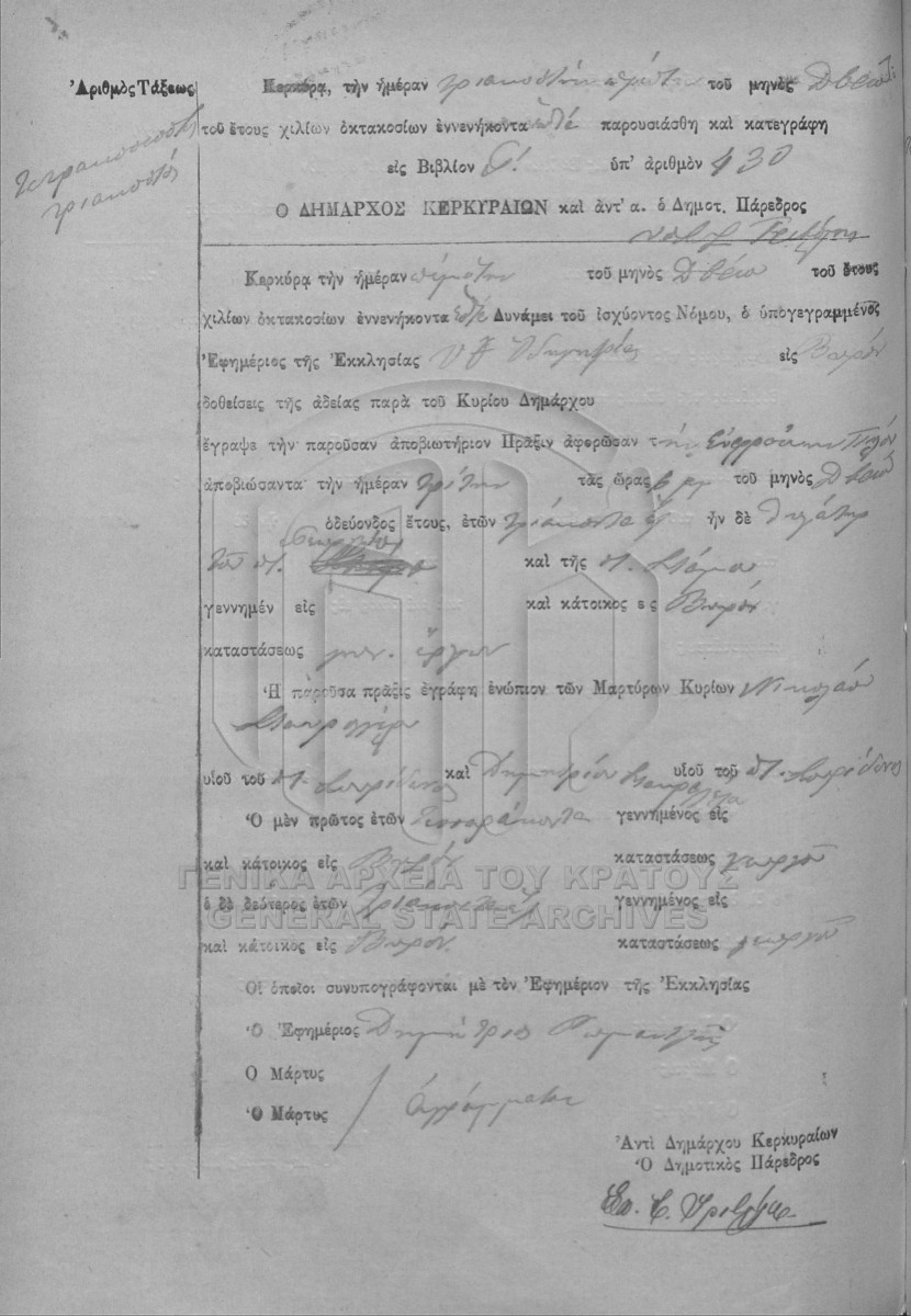 Υποφάκελος #003 - ΛΗΞΙΑΡΧΕΙΟ ΚΕΡΚΥΡΑΣ  [1897]