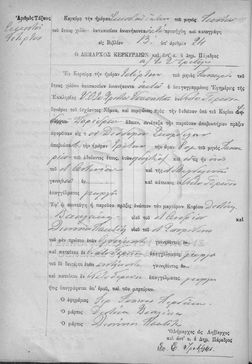 File #1898 - ΛΗΞΙΑΡΧΕΙΟ ΚΕΡΚΥΡΑΣ  [1898]