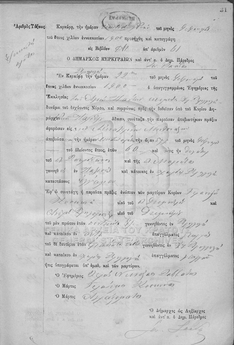 Φάκελος #1900 - ΛΗΞΙΑΡΧΕΙΟ ΚΕΡΚΥΡΑΣ  [1900]