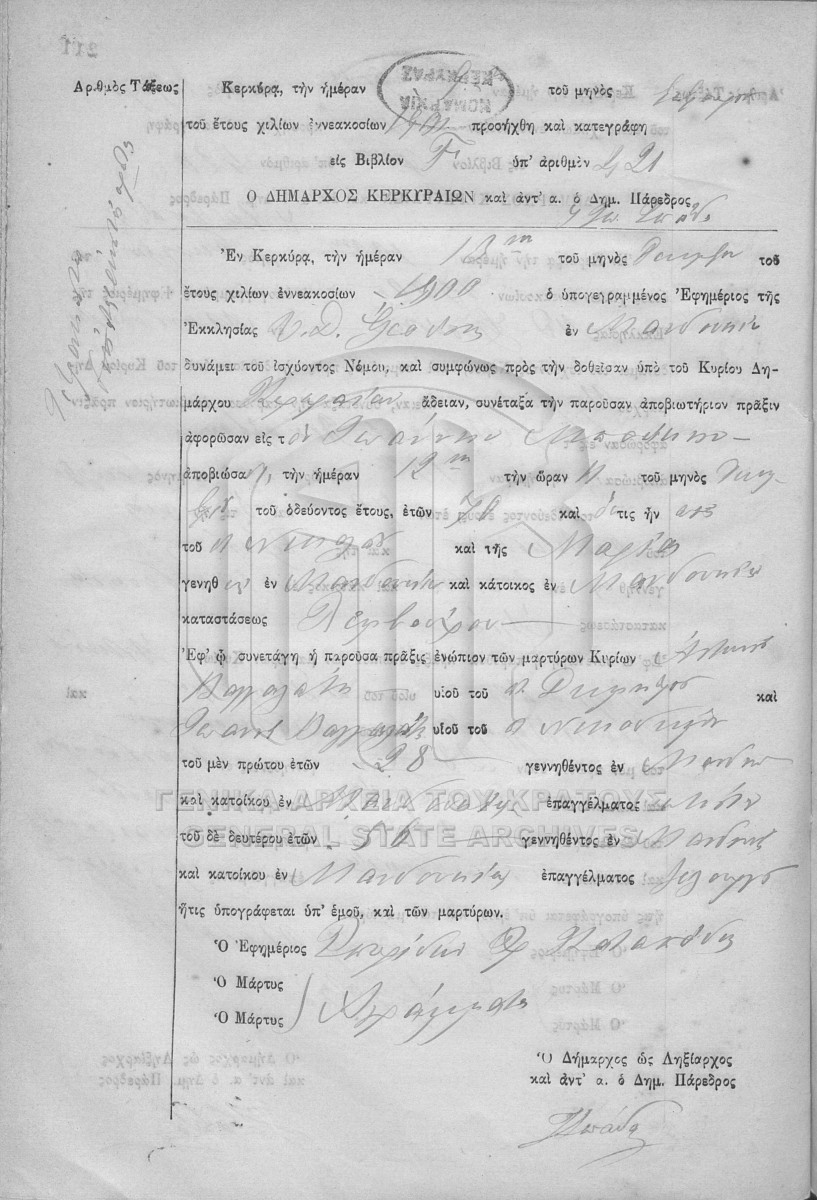 Φάκελος #1900 - ΛΗΞΙΑΡΧΕΙΟ ΚΕΡΚΥΡΑΣ  [1900]