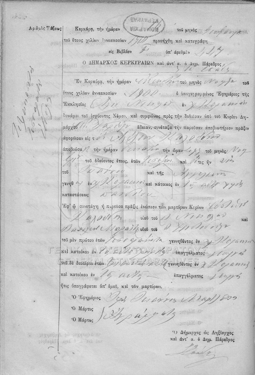 [Subfile] GRGSA-KER_REGD00.00.F001900.SF0003 Subfile #003 - ΛΗΞΙΑΡΧΕΙΟ ΚΕΡΚΥΡΑΣ [1900] Βιβλίο 3. Αριθμός πράξεων 1 - 473. |