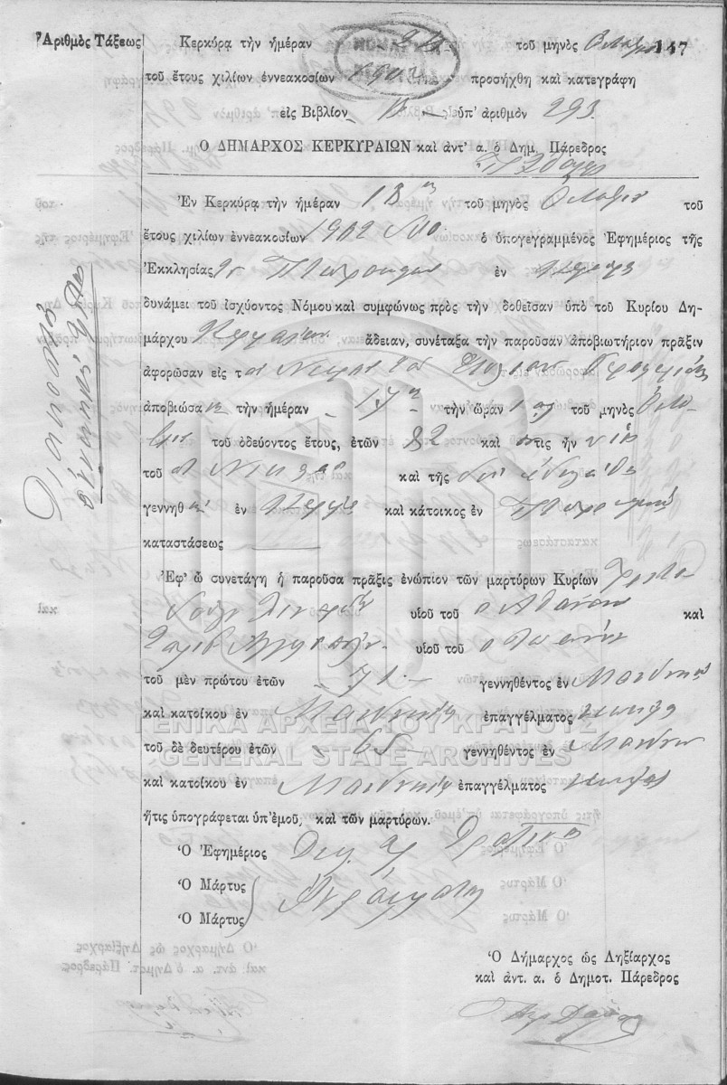 Υποφάκελος #002 - ΛΗΞΙΑΡΧΕΙΟ ΚΕΡΚΥΡΑΣ  [1902]