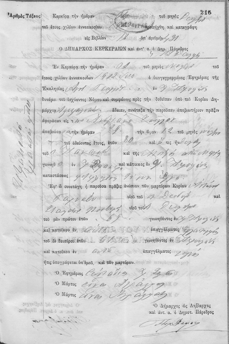 ΛΗΞΙΑΡΧΕΙΟ ΚΕΡΚΥΡΑΣ - Ληξιαρχικές Πράξεις Θανάτων  [1841 - 1932]