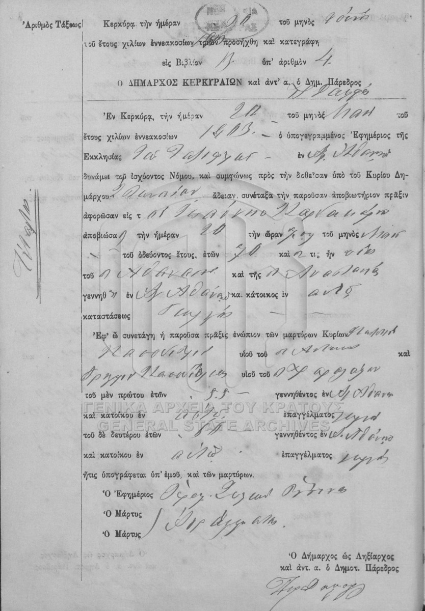 [Sous-fichier] GRGSA-KER_REGD00.00.F001903.SF0002 Sous-fichier #002 - ΛΗΞΙΑΡΧΕΙΟ ΚΕΡΚΥΡΑΣ [1903] Βιβλίο δεύτερο, αριθμός πράξεων 1 - 600. |