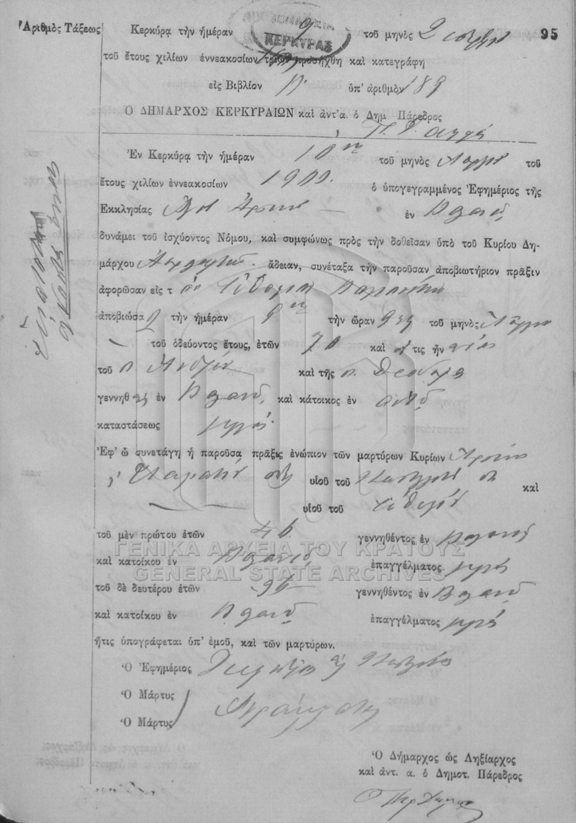 [Αρχείο] GRGSA-KER_REGD00 ΛΗΞΙΑΡΧΕΙΟ ΚΕΡΚΥΡΑΣ - Ληξιαρχικές Πράξεις Θανάτων [1841 - 1932] Περιεχόμενα: Αριθμός πράξεων 1 - 600. Βιβλίο 1. Αριθμός πράξεων 1 - 565. |