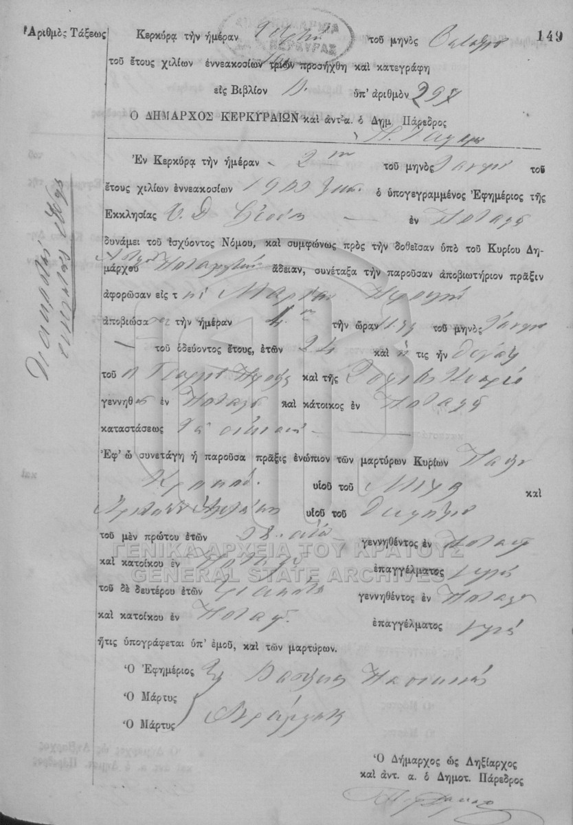 Υποφάκελος #002 - ΛΗΞΙΑΡΧΕΙΟ ΚΕΡΚΥΡΑΣ  [1903]