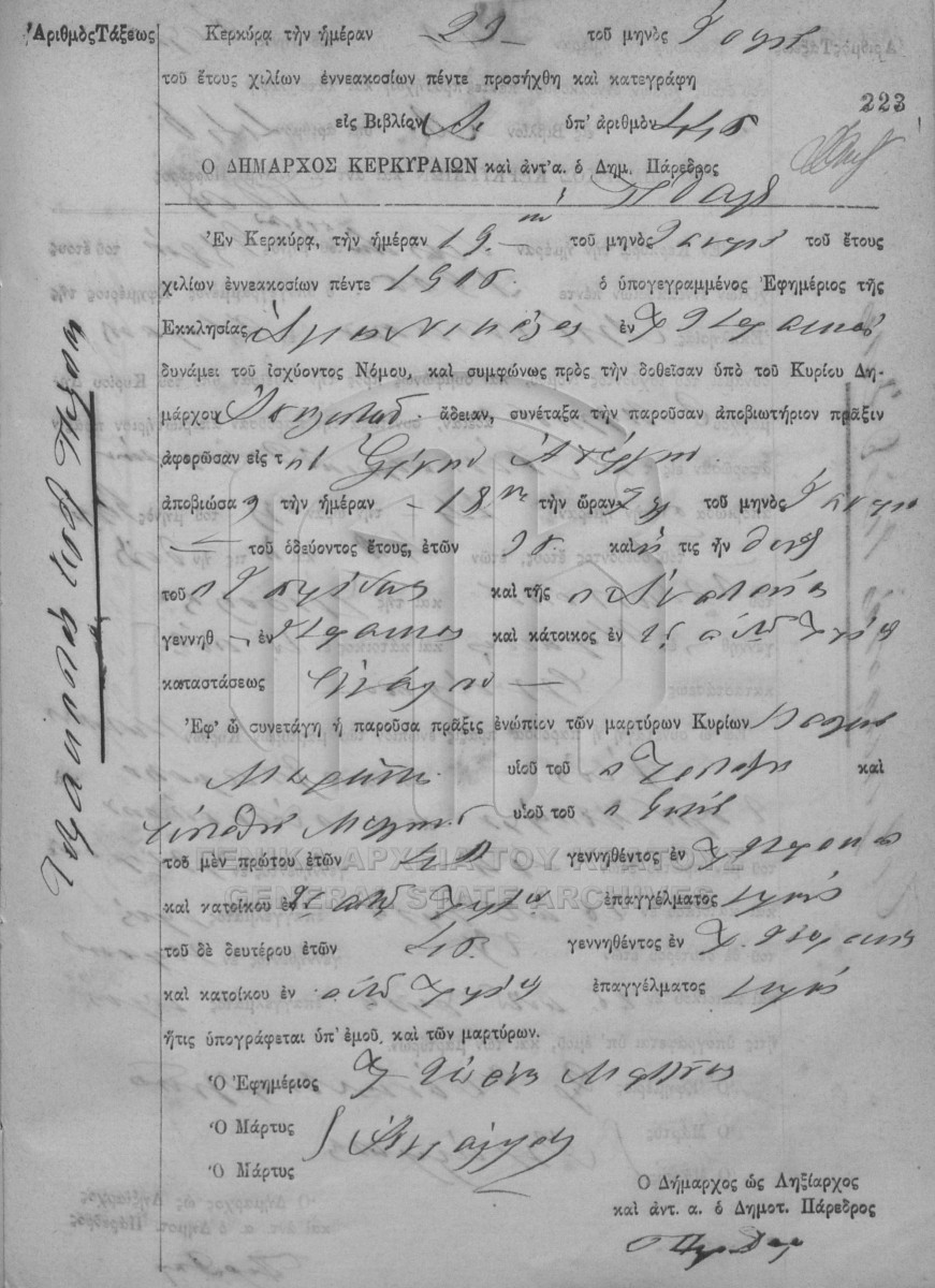 Υποφάκελος #001 - ΛΗΞΙΑΡΧΕΙΟ ΚΕΡΚΥΡΑΣ  [1905]