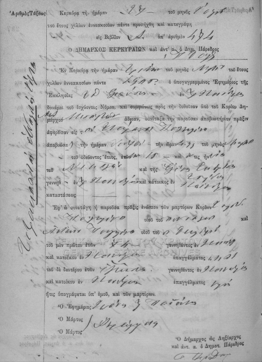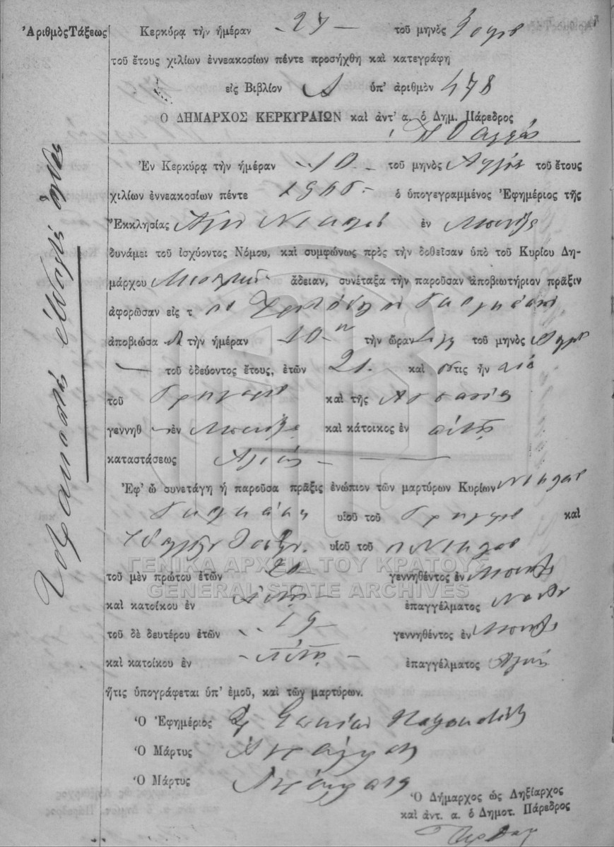 Φάκελος #1905 - ΛΗΞΙΑΡΧΕΙΟ ΚΕΡΚΥΡΑΣ  [1905]