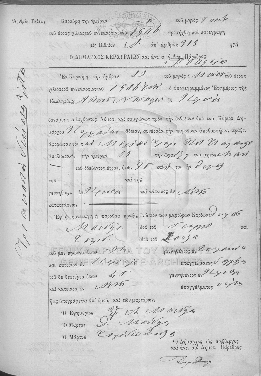 File #1906 - ΛΗΞΙΑΡΧΕΙΟ ΚΕΡΚΥΡΑΣ  [1906]