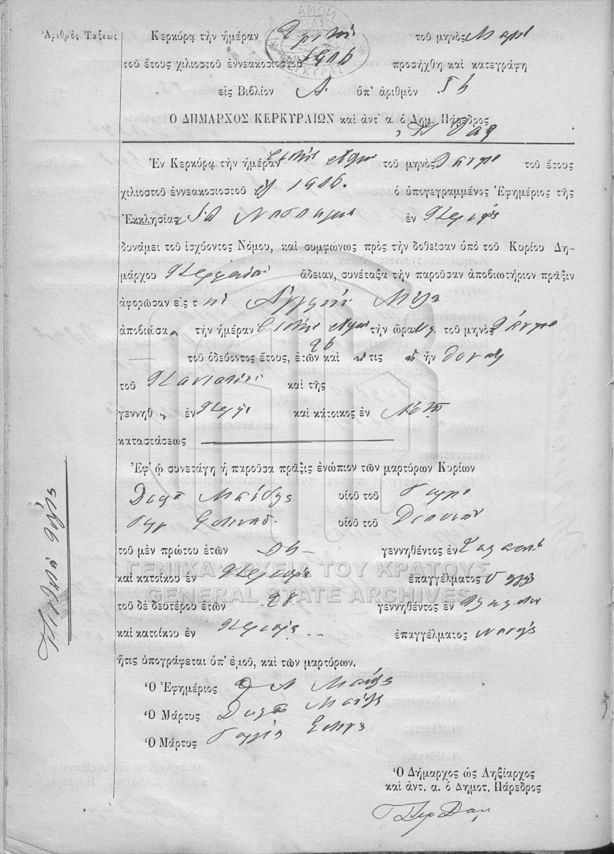Υποφάκελος #001 - ΛΗΞΙΑΡΧΕΙΟ ΚΕΡΚΥΡΑΣ  [1906]
