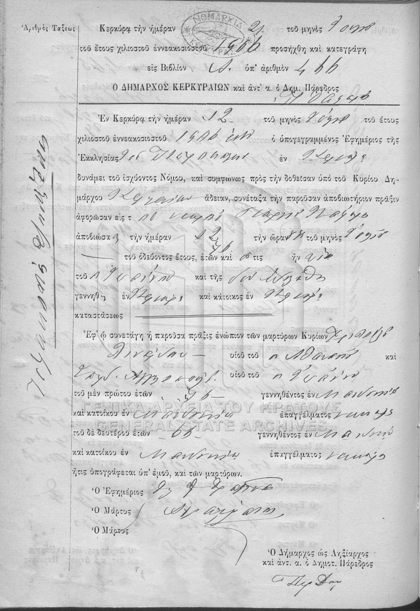File #1906 - ΛΗΞΙΑΡΧΕΙΟ ΚΕΡΚΥΡΑΣ  [1906]