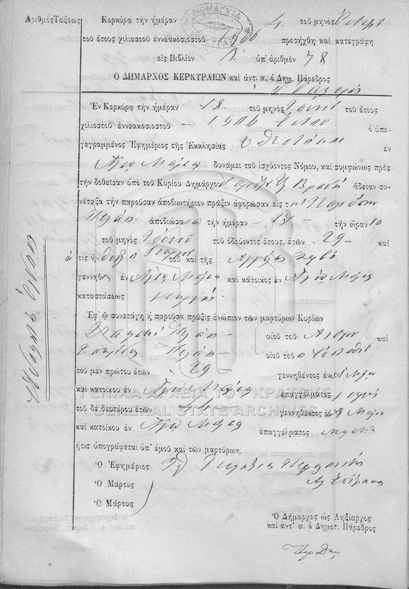 Υποφάκελος #002 - ΛΗΞΙΑΡΧΕΙΟ ΚΕΡΚΥΡΑΣ  [1906]