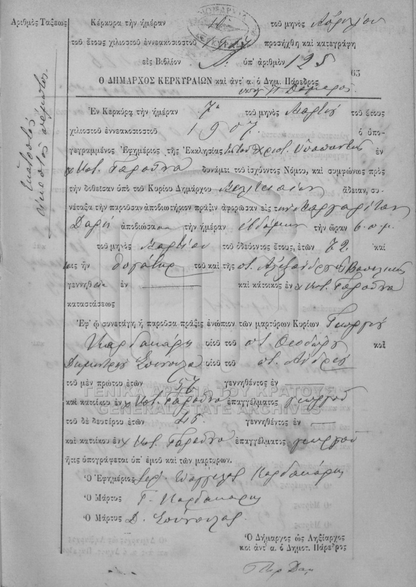 Φάκελος #1907 - ΛΗΞΙΑΡΧΕΙΟ ΚΕΡΚΥΡΑΣ  [1907]