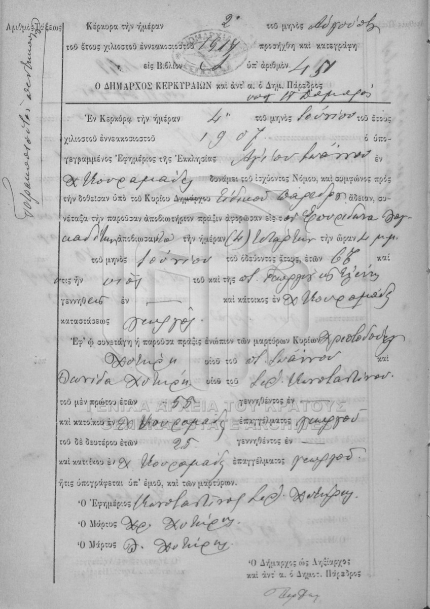 Φάκελος #1907 - ΛΗΞΙΑΡΧΕΙΟ ΚΕΡΚΥΡΑΣ  [1907]