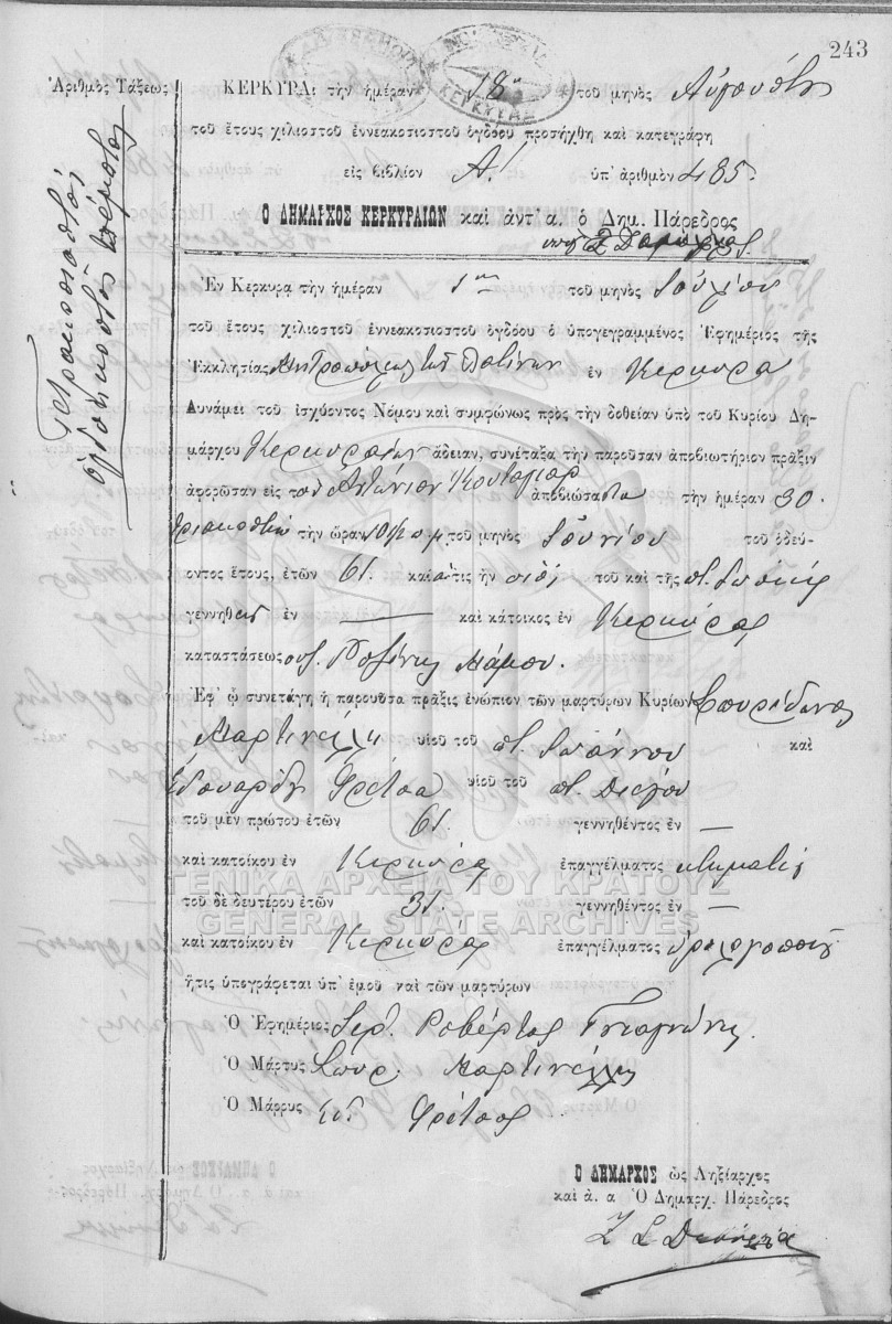 ΛΗΞΙΑΡΧΕΙΟ ΚΕΡΚΥΡΑΣ - Ληξιαρχικές Πράξεις Θανάτων  [1841 - 1932]