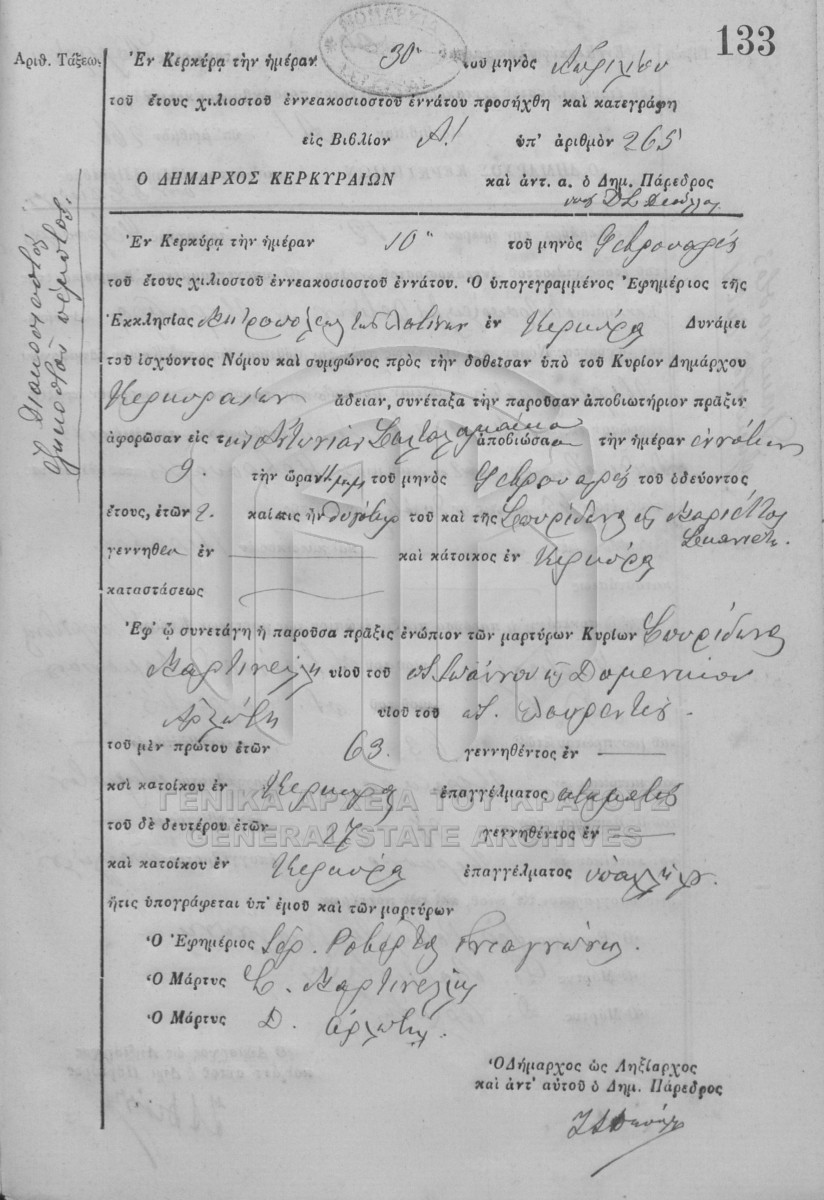 Subfile #001 - ΛΗΞΙΑΡΧΕΙΟ ΚΕΡΚΥΡΑΣ  [1909]