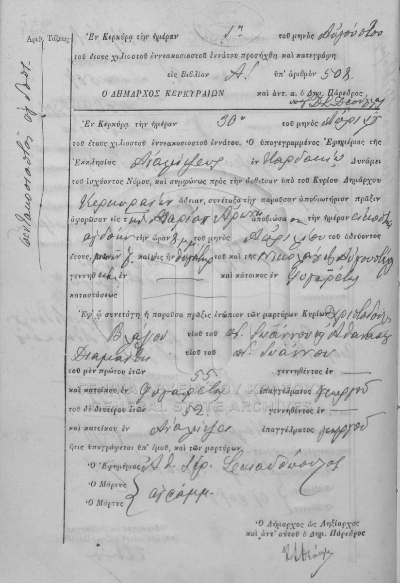 Sous-fichier #001 - ΛΗΞΙΑΡΧΕΙΟ ΚΕΡΚΥΡΑΣ  [1909]