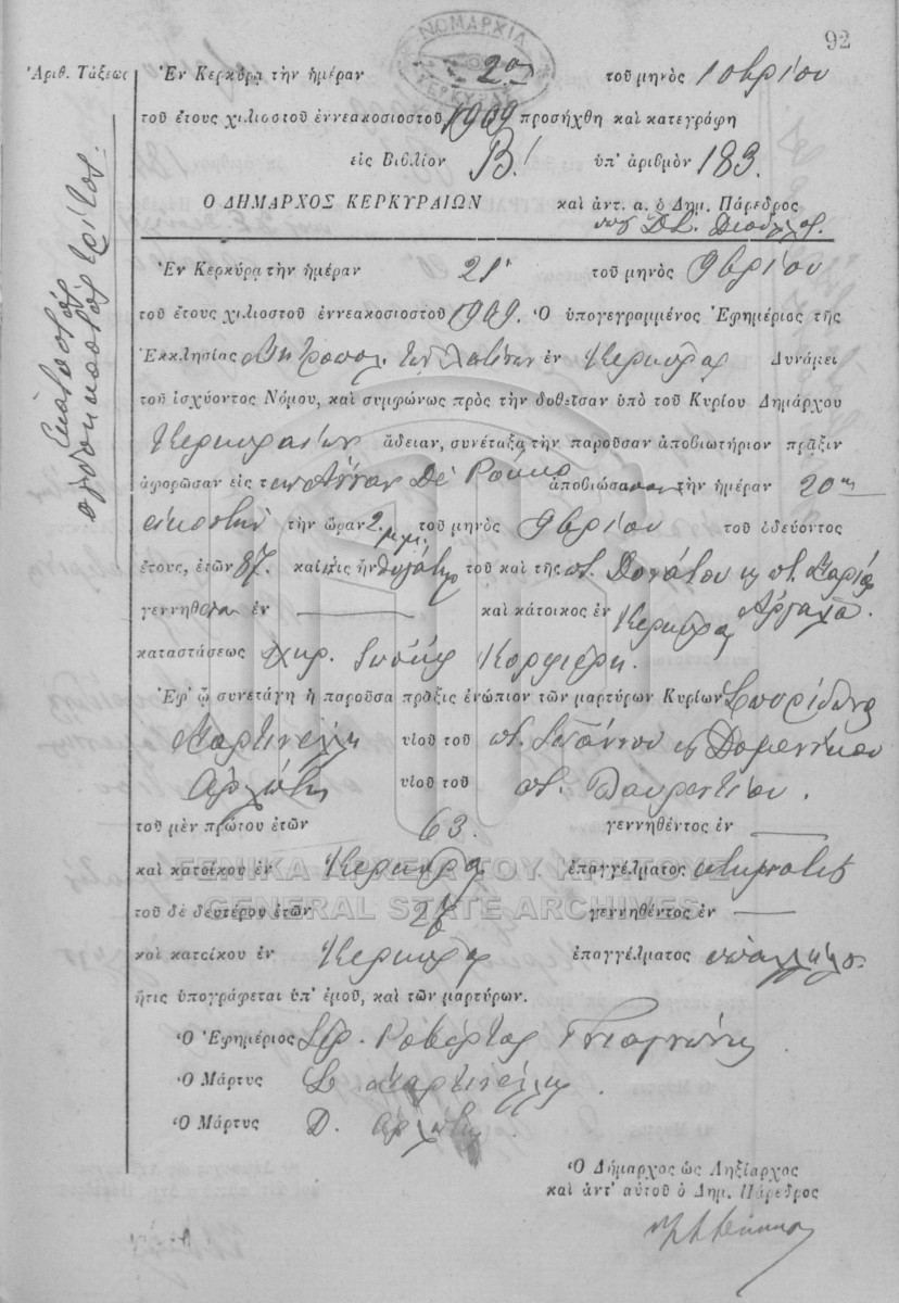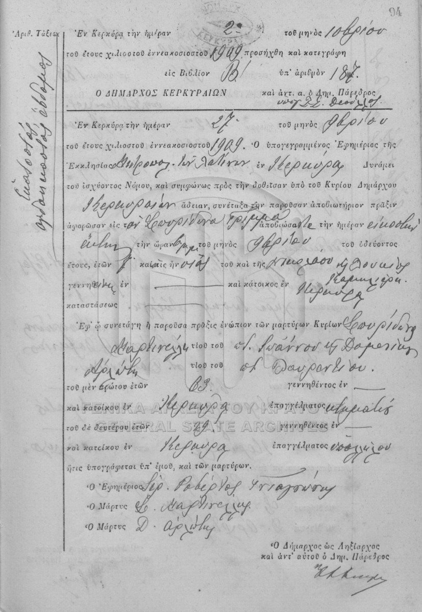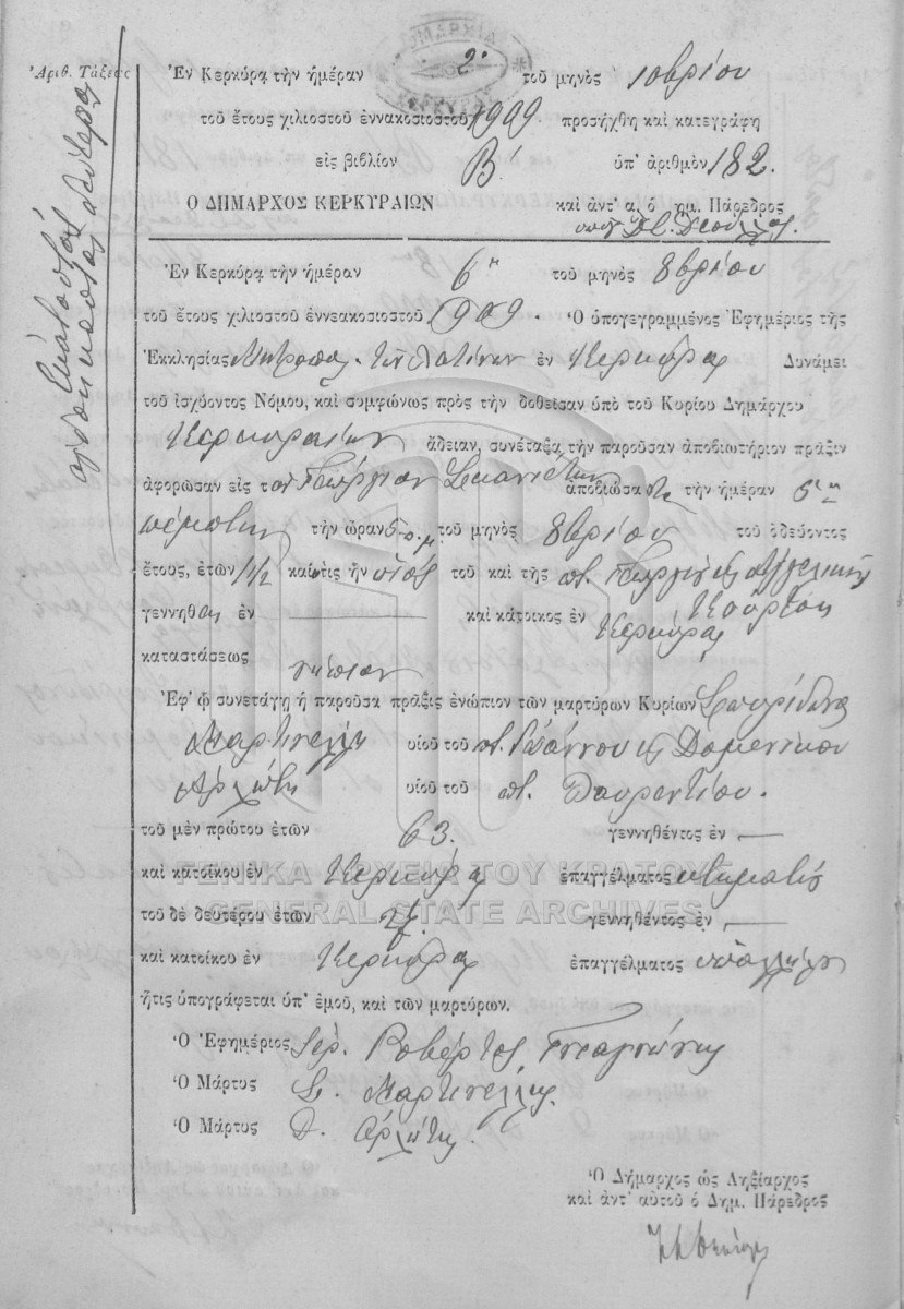 File #1909 - ΛΗΞΙΑΡΧΕΙΟ ΚΕΡΚΥΡΑΣ  [1909]