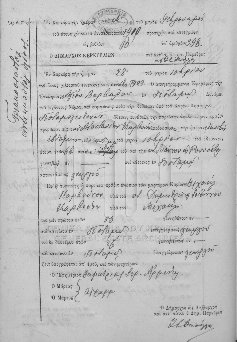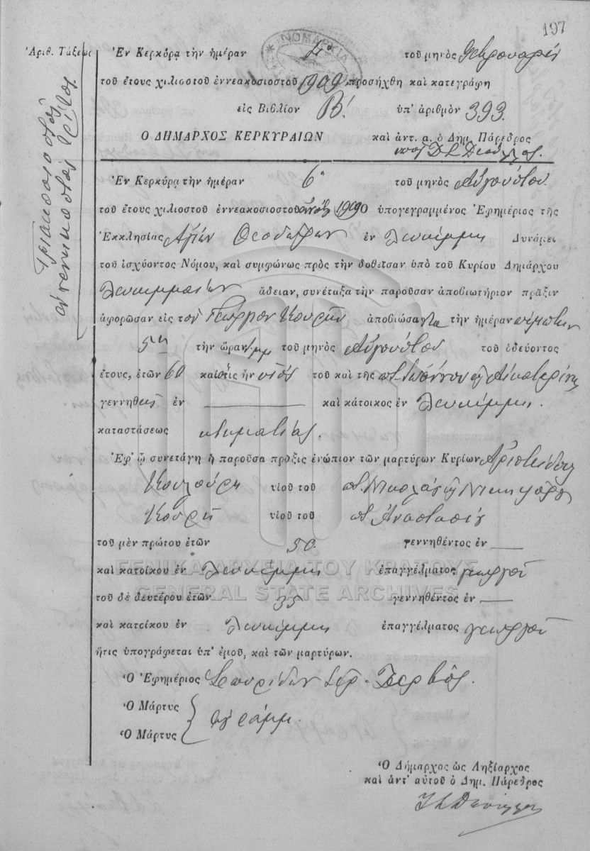 File #1909 - ΛΗΞΙΑΡΧΕΙΟ ΚΕΡΚΥΡΑΣ  [1909]