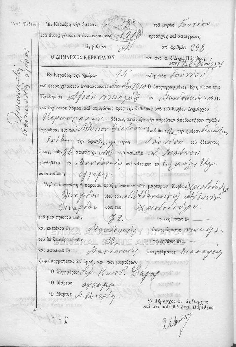 File #1910 - ΛΗΞΙΑΡΧΕΙΟ ΚΕΡΚΥΡΑΣ  [1910]