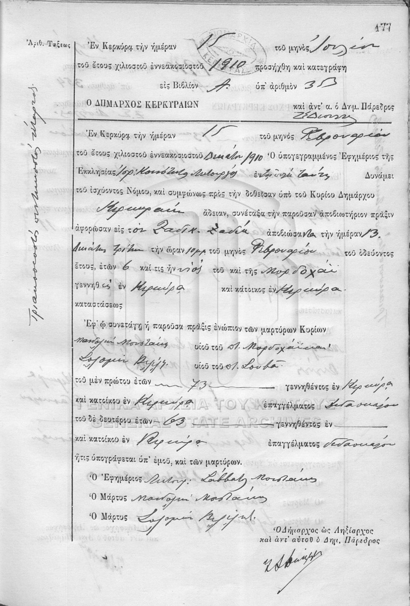 [Subfile] GRGSA-KER_REGD00.00.F001910.SF0001 Subfile #001 - ΛΗΞΙΑΡΧΕΙΟ ΚΕΡΚΥΡΑΣ [1910] Βιβλίο πρώτο, αριθμός πράξεων 1 - 600. |