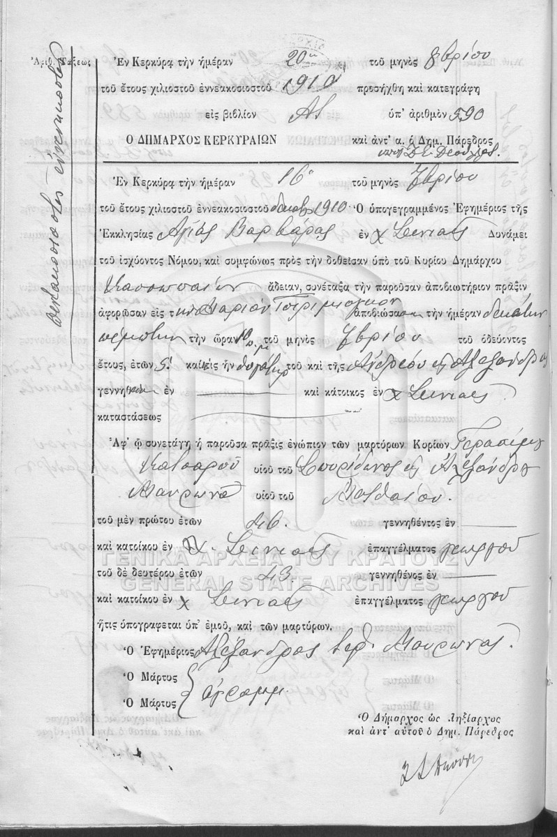 File #1910 - ΛΗΞΙΑΡΧΕΙΟ ΚΕΡΚΥΡΑΣ  [1910]