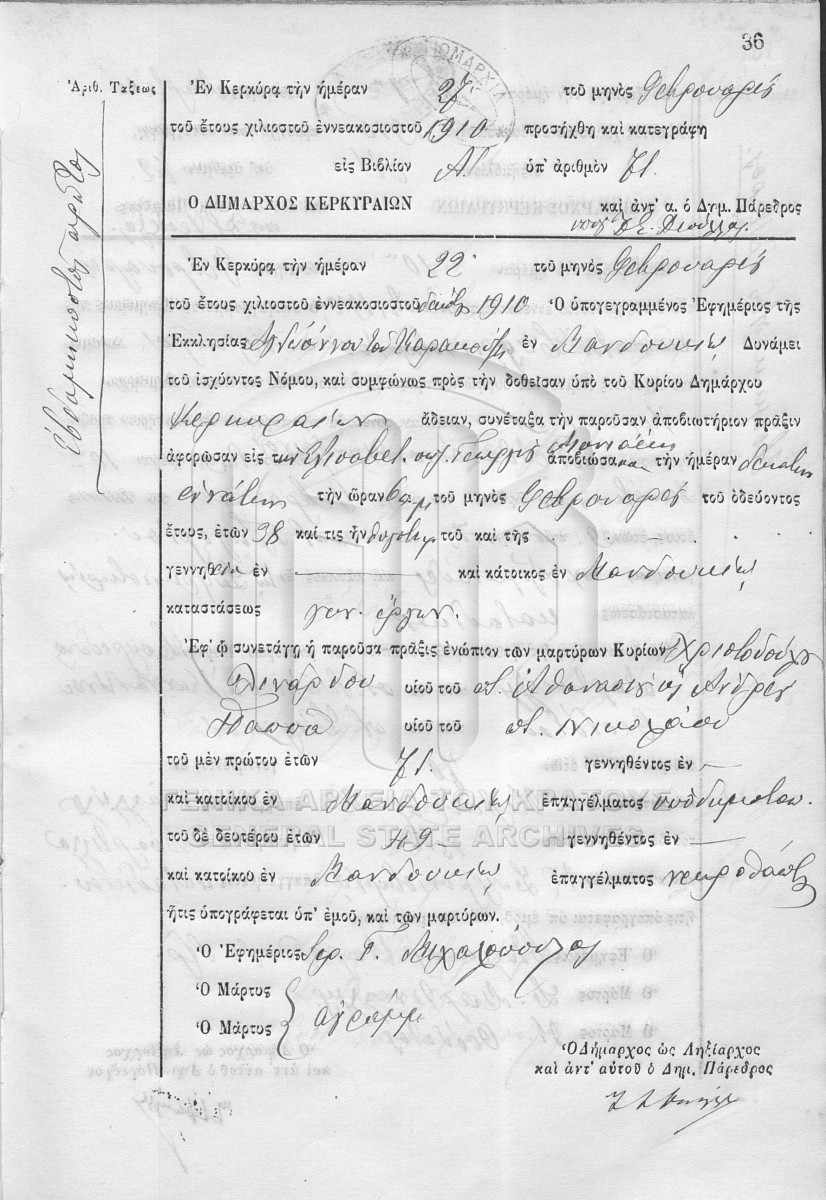 [Subfile] GRGSA-KER_REGD00.00.F001910.SF0001 Subfile #001 - ΛΗΞΙΑΡΧΕΙΟ ΚΕΡΚΥΡΑΣ [1910] Βιβλίο πρώτο, αριθμός πράξεων 1 - 600. |