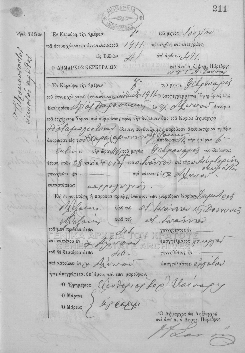 Fichier #1911 - ΛΗΞΙΑΡΧΕΙΟ ΚΕΡΚΥΡΑΣ  [1911]