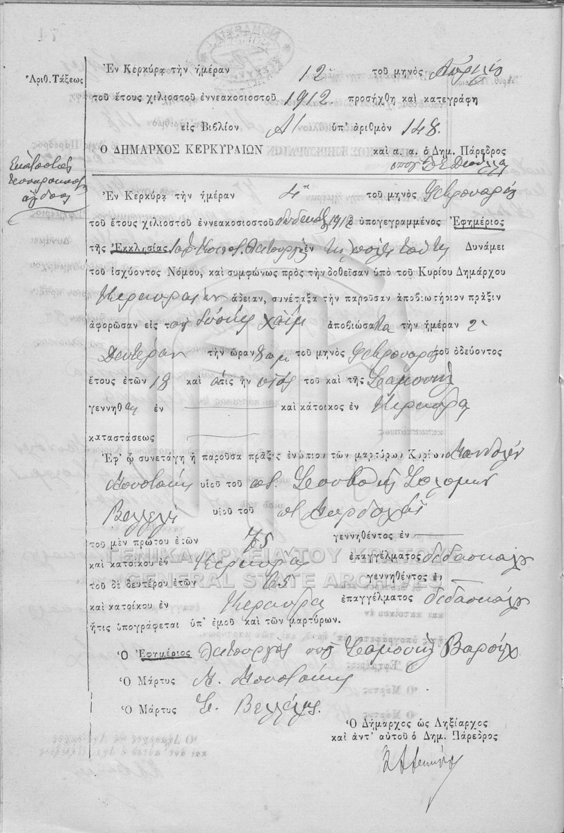 File #1912 - ΛΗΞΙΑΡΧΕΙΟ ΚΕΡΚΥΡΑΣ  [1912]