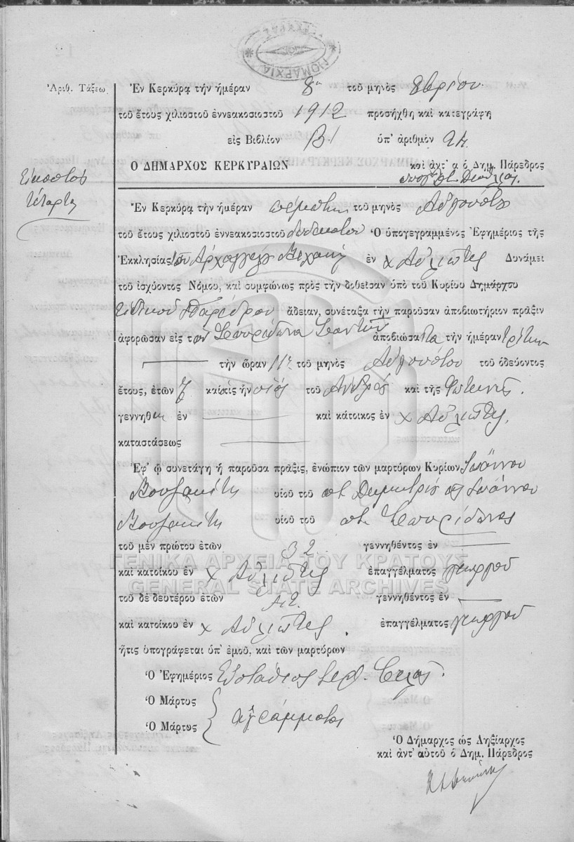 Υποφάκελος #002 - ΛΗΞΙΑΡΧΕΙΟ ΚΕΡΚΥΡΑΣ  [1912]