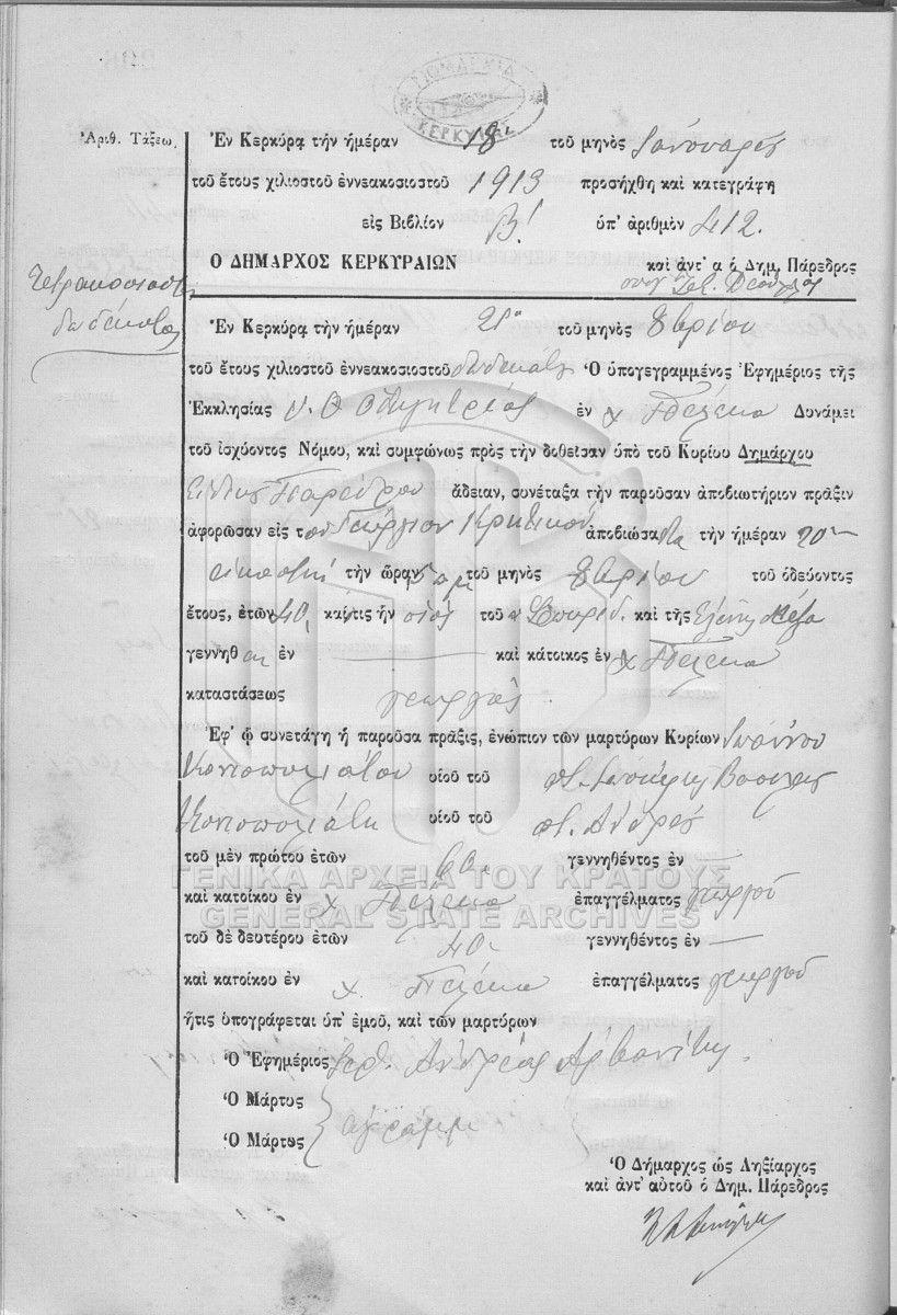 Υποφάκελος #002 - ΛΗΞΙΑΡΧΕΙΟ ΚΕΡΚΥΡΑΣ  [1912]