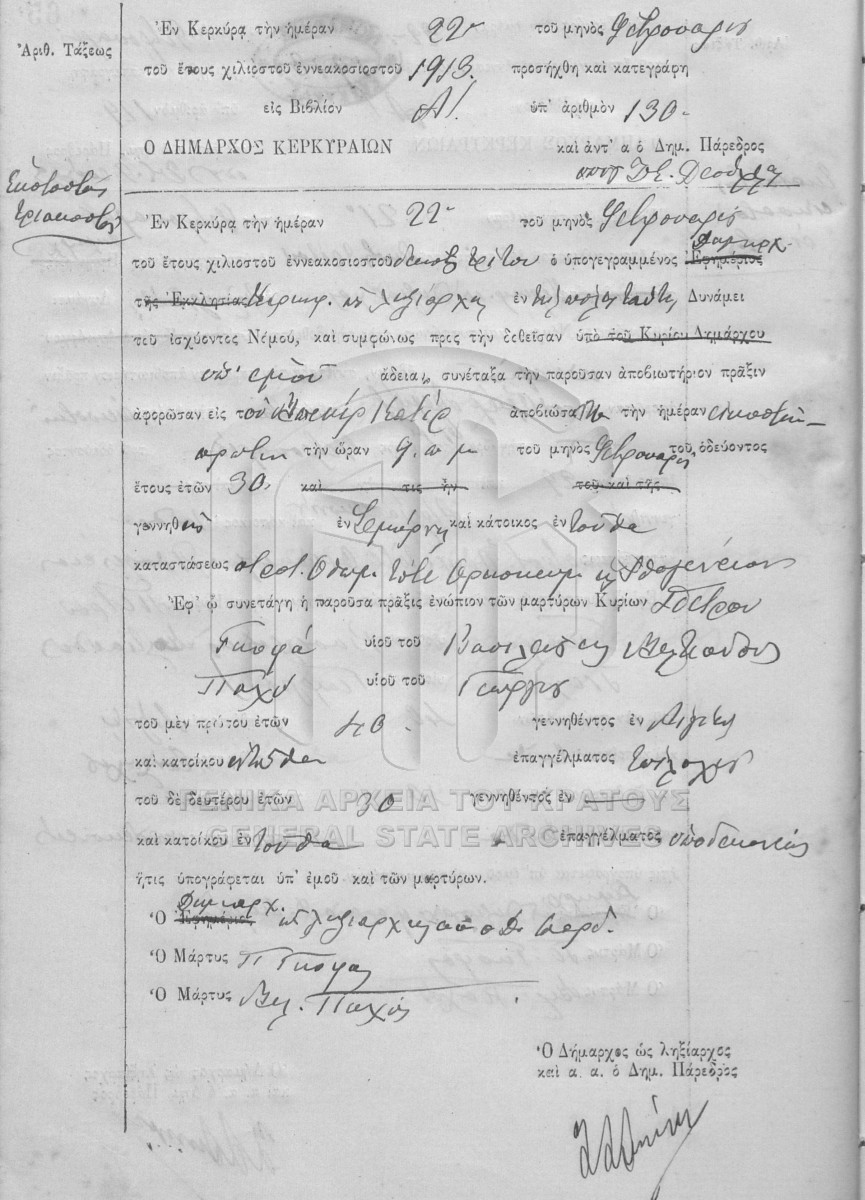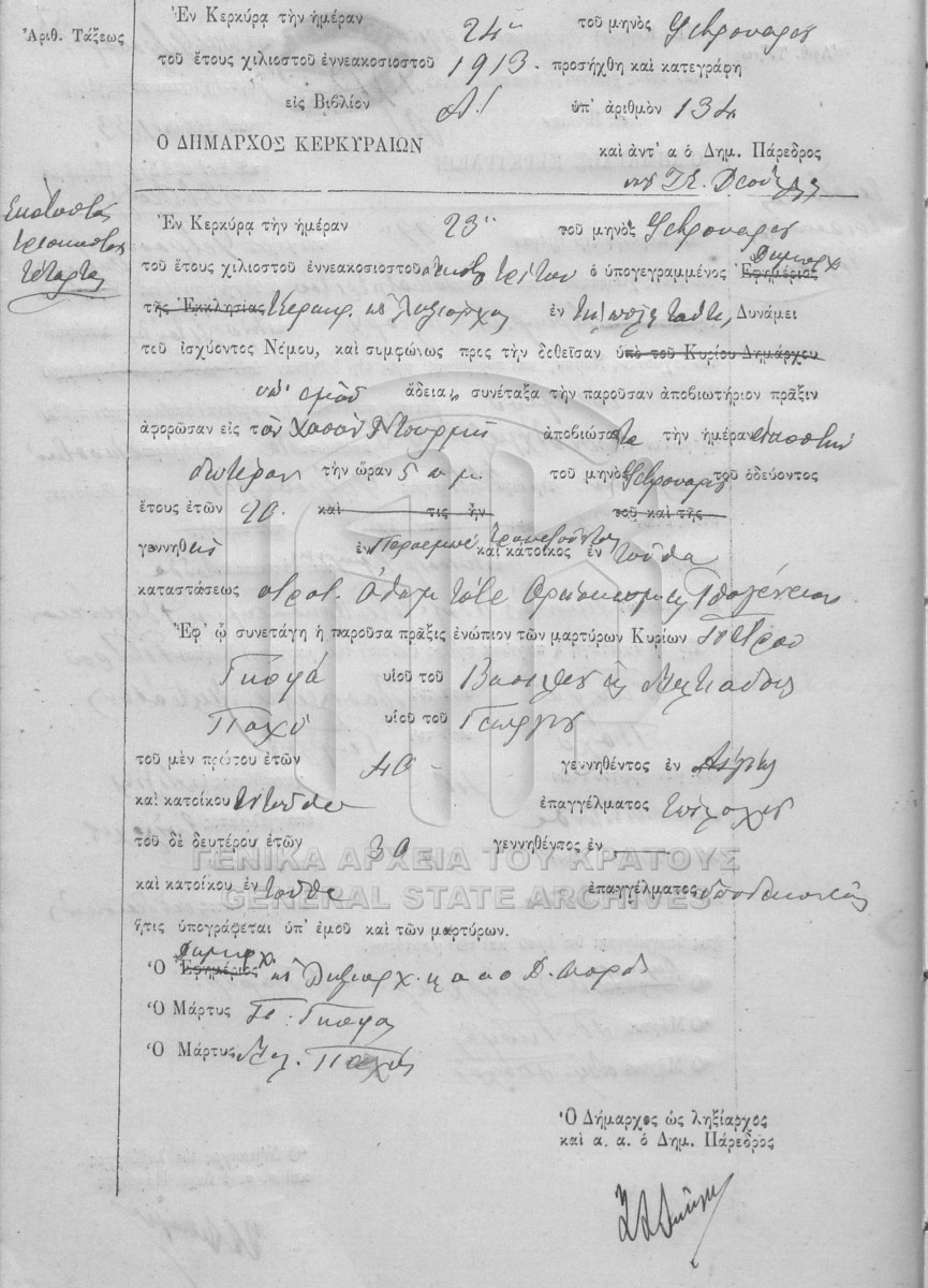 Υποφάκελος #001 - ΛΗΞΙΑΡΧΕΙΟ ΚΕΡΚΥΡΑΣ  [1913]