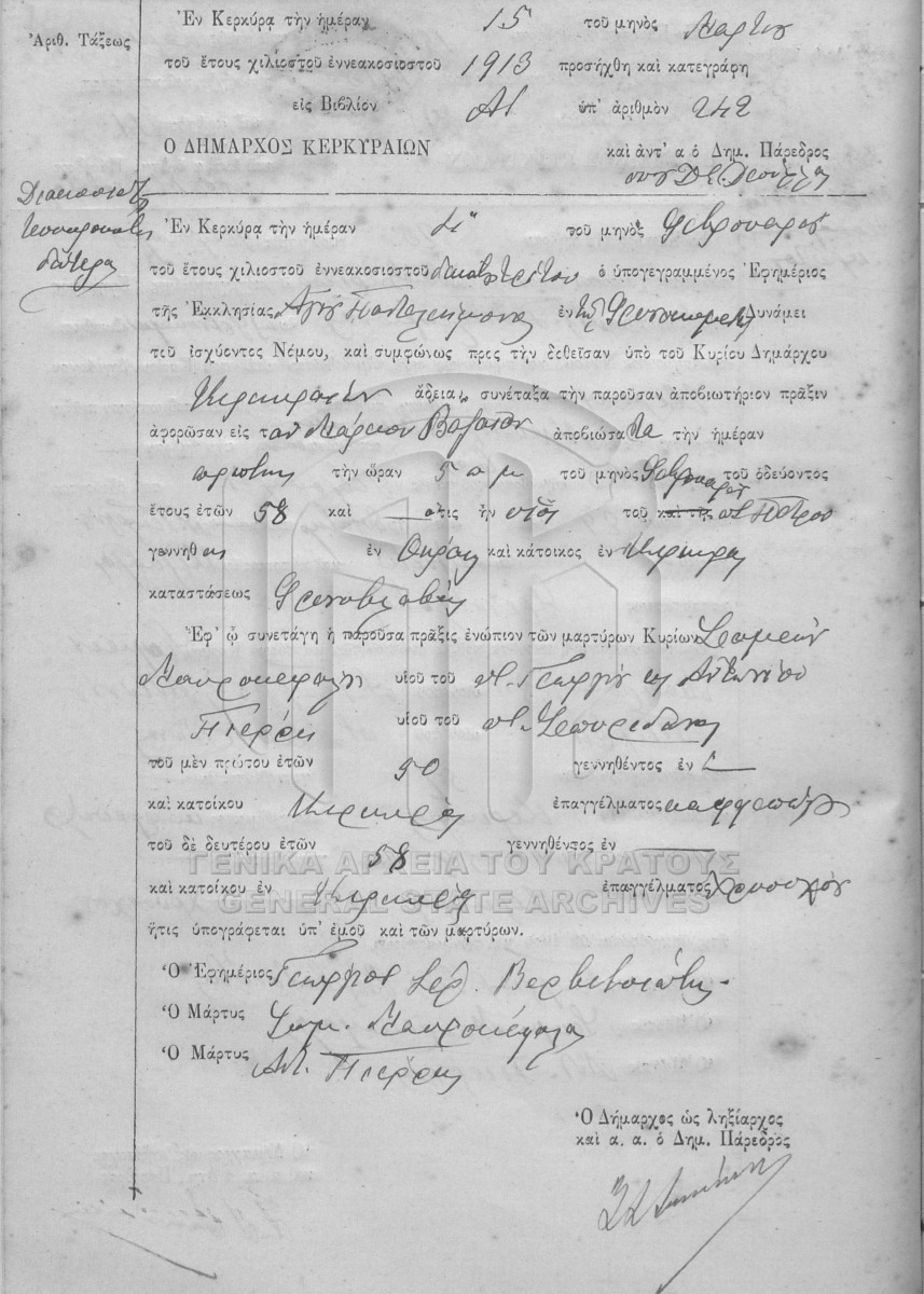 Υποφάκελος #001 - ΛΗΞΙΑΡΧΕΙΟ ΚΕΡΚΥΡΑΣ  [1913]