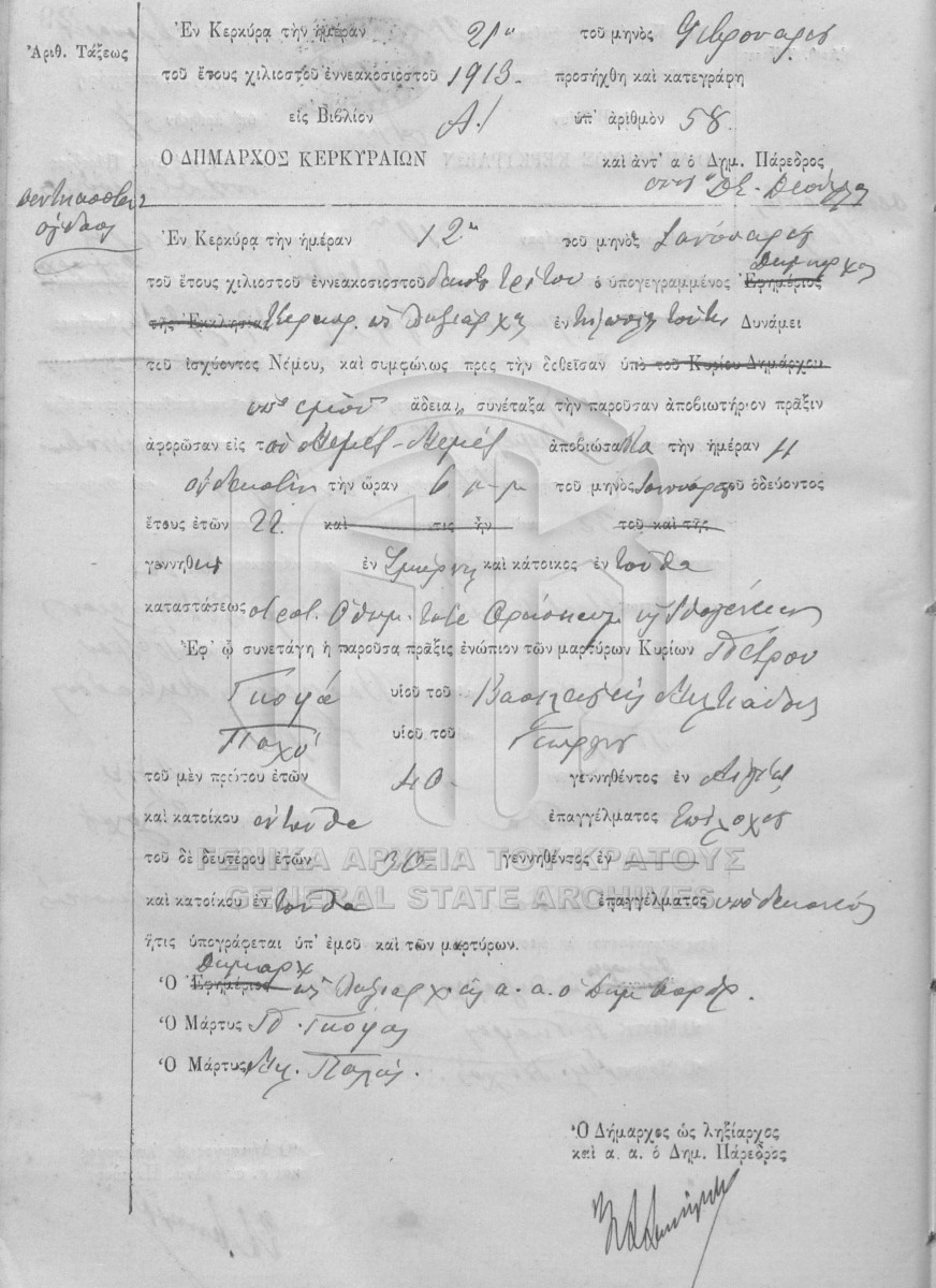 Υποφάκελος #001 - ΛΗΞΙΑΡΧΕΙΟ ΚΕΡΚΥΡΑΣ  [1913]