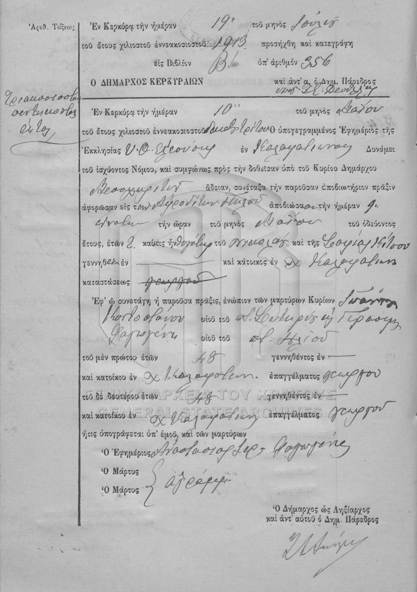 File #1913 - ΛΗΞΙΑΡΧΕΙΟ ΚΕΡΚΥΡΑΣ  [1913]
