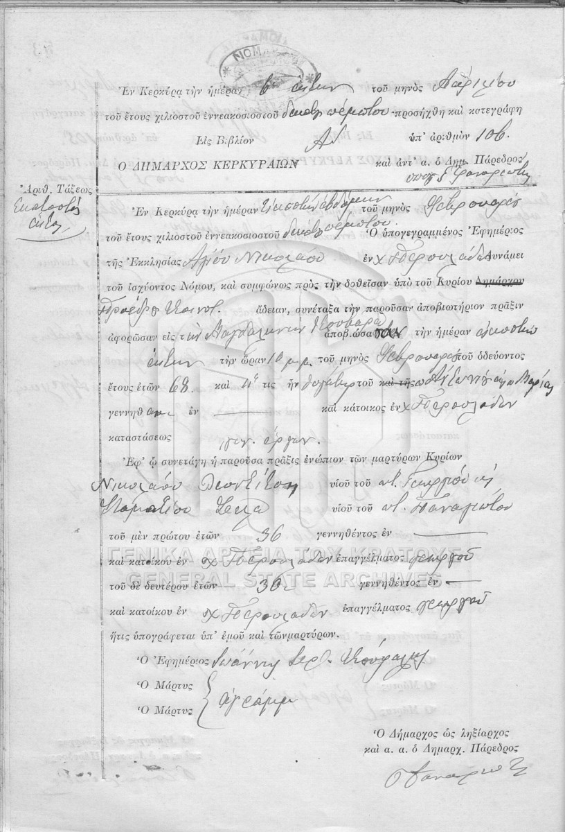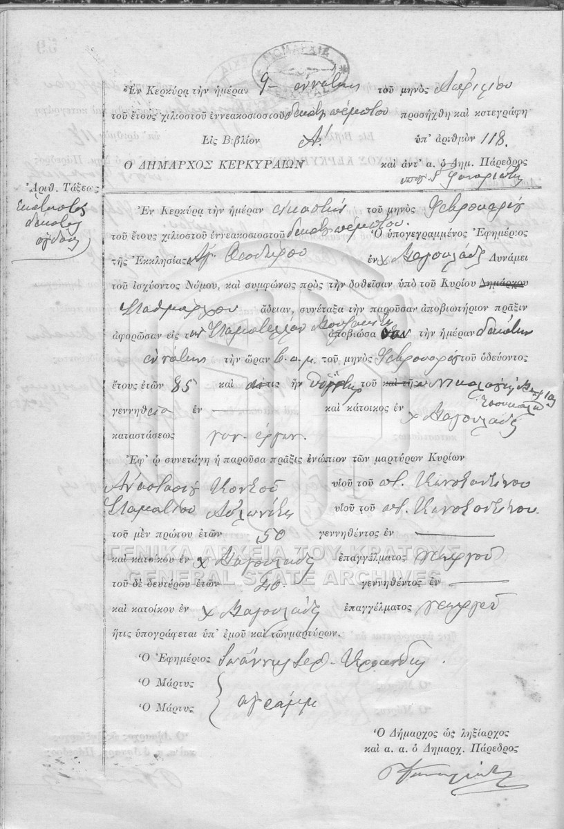 ΛΗΞΙΑΡΧΕΙΟ ΚΕΡΚΥΡΑΣ - Ληξιαρχικές Πράξεις Θανάτων  [1841 - 1932]