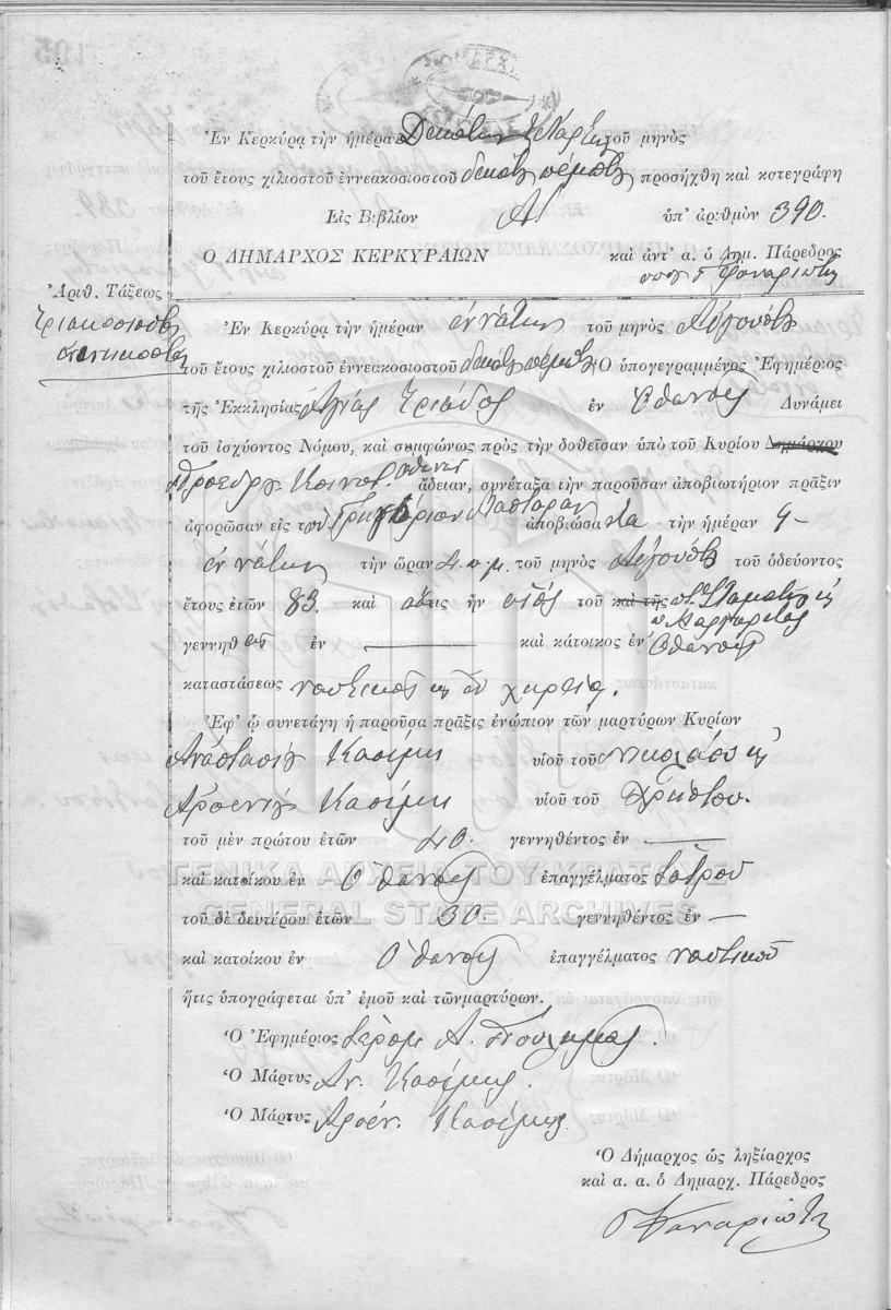 ΛΗΞΙΑΡΧΕΙΟ ΚΕΡΚΥΡΑΣ - Ληξιαρχικές Πράξεις Θανάτων  [1841 - 1932]