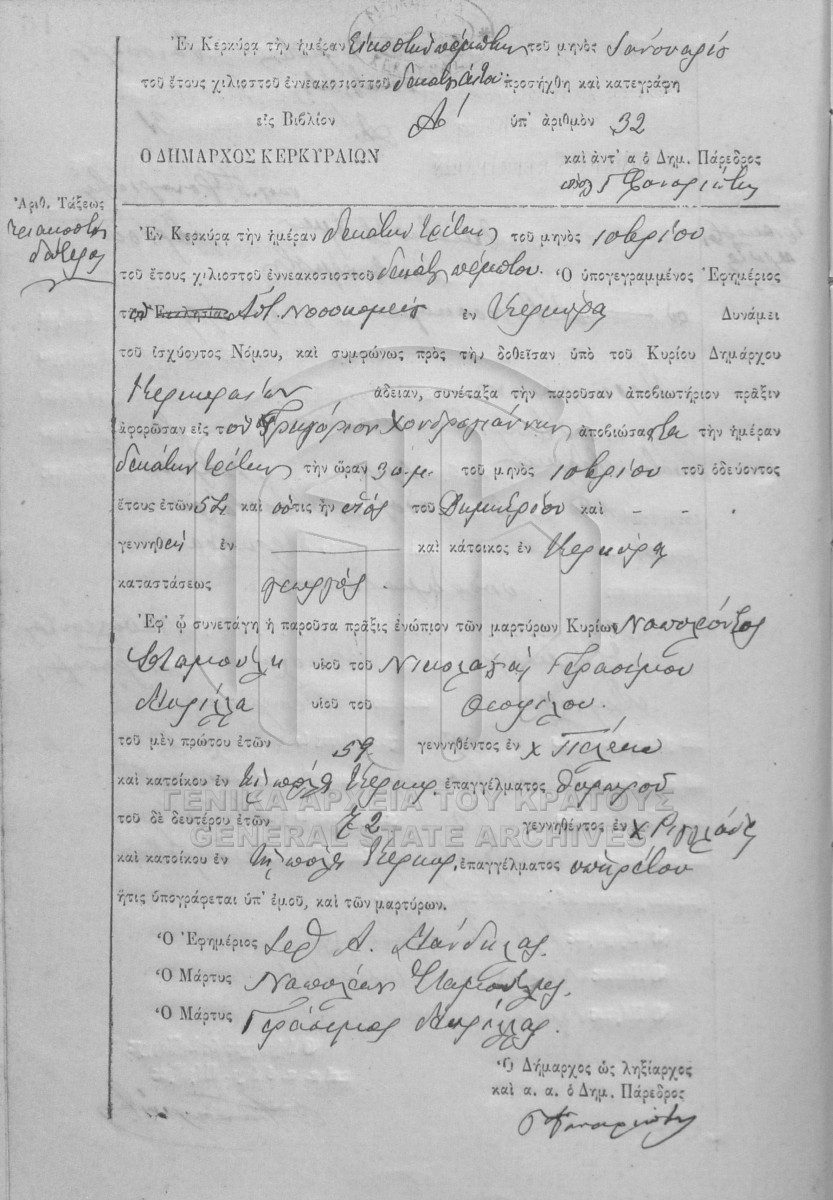 ΛΗΞΙΑΡΧΕΙΟ ΚΕΡΚΥΡΑΣ - Ληξιαρχικές Πράξεις Θανάτων  [1841 - 1932]