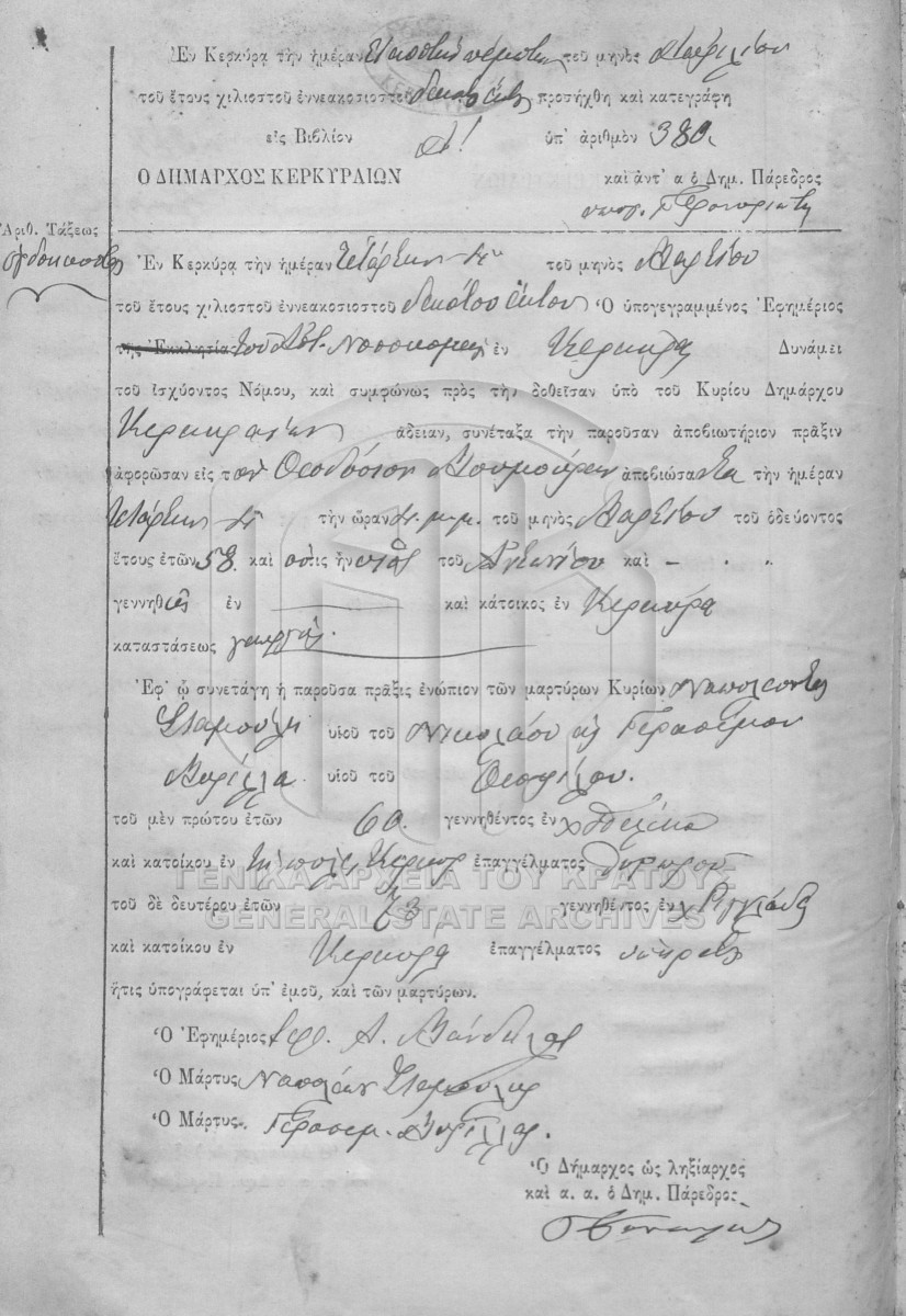 ΛΗΞΙΑΡΧΕΙΟ ΚΕΡΚΥΡΑΣ - Ληξιαρχικές Πράξεις Θανάτων  [1841 - 1932]