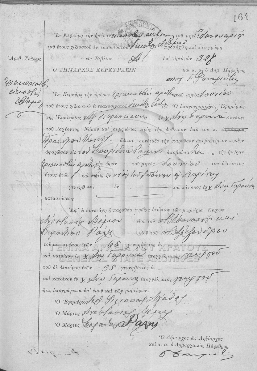 ΛΗΞΙΑΡΧΕΙΟ ΚΕΡΚΥΡΑΣ - Ληξιαρχικές Πράξεις Θανάτων  [1841 - 1932]