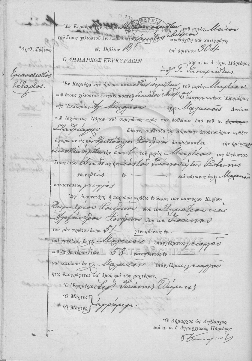 ΛΗΞΙΑΡΧΕΙΟ ΚΕΡΚΥΡΑΣ - Ληξιαρχικές Πράξεις Θανάτων  [1841 - 1932]