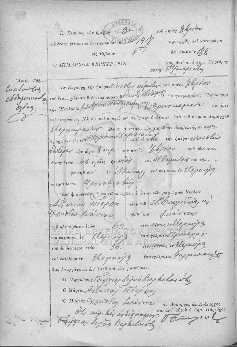File #1917 - ΛΗΞΙΑΡΧΕΙΟ ΚΕΡΚΥΡΑΣ  [1917]