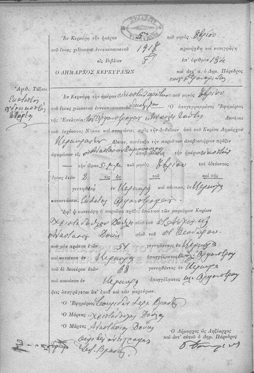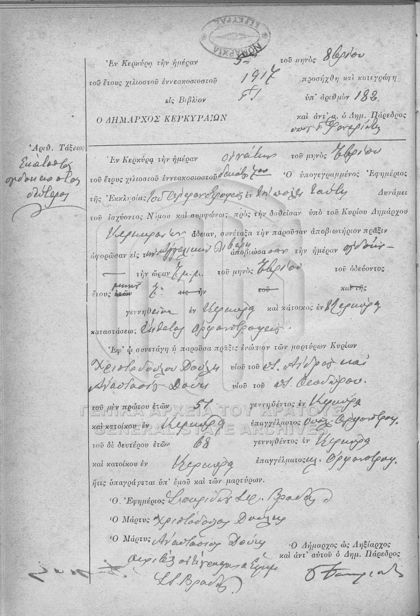 |  | [Fonds] GRGSA-KER_REGD00 ΛΗΞΙΑΡΧΕΙΟ ΚΕΡΚΥΡΑΣ - Ληξιαρχικές Πράξεις Θανάτων [1841 - 1932] Contenu: Αριθμός πράξεων 1 - 600. Βιβλίο 1. Αριθμός πράξεων 1 - 565. |