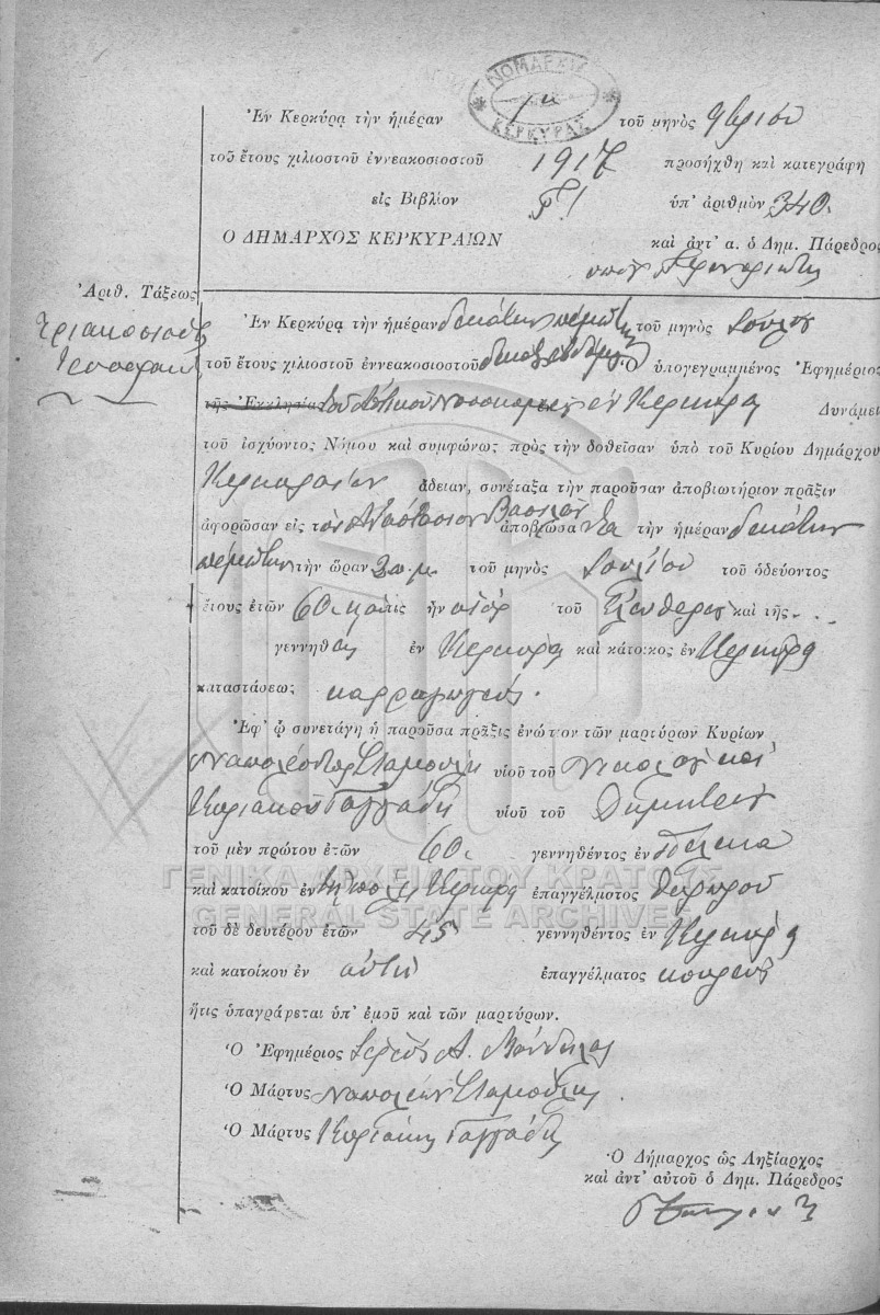 File #1917 - ΛΗΞΙΑΡΧΕΙΟ ΚΕΡΚΥΡΑΣ  [1917]