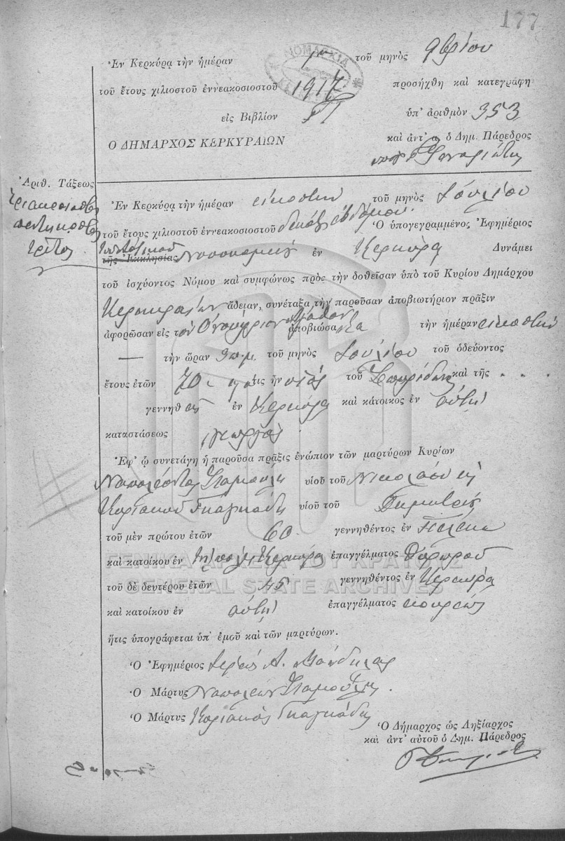 Υποφάκελος #003 - ΛΗΞΙΑΡΧΕΙΟ ΚΕΡΚΥΡΑΣ  [1917]